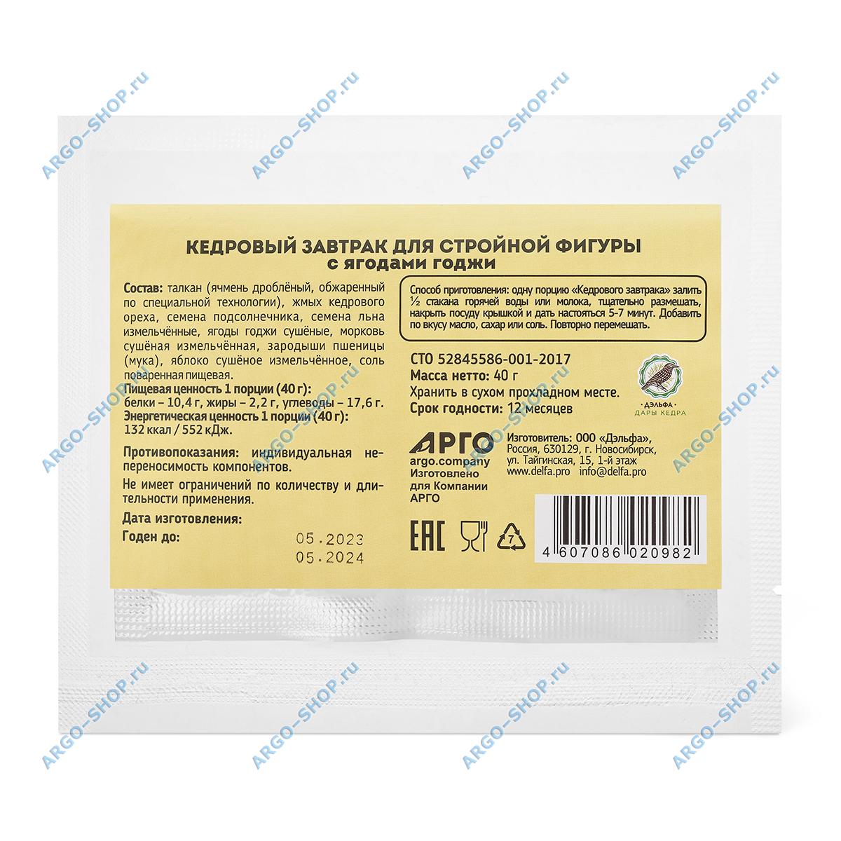 Состав Завтрак кедровый для стройной фигуры с ягодами годжи: