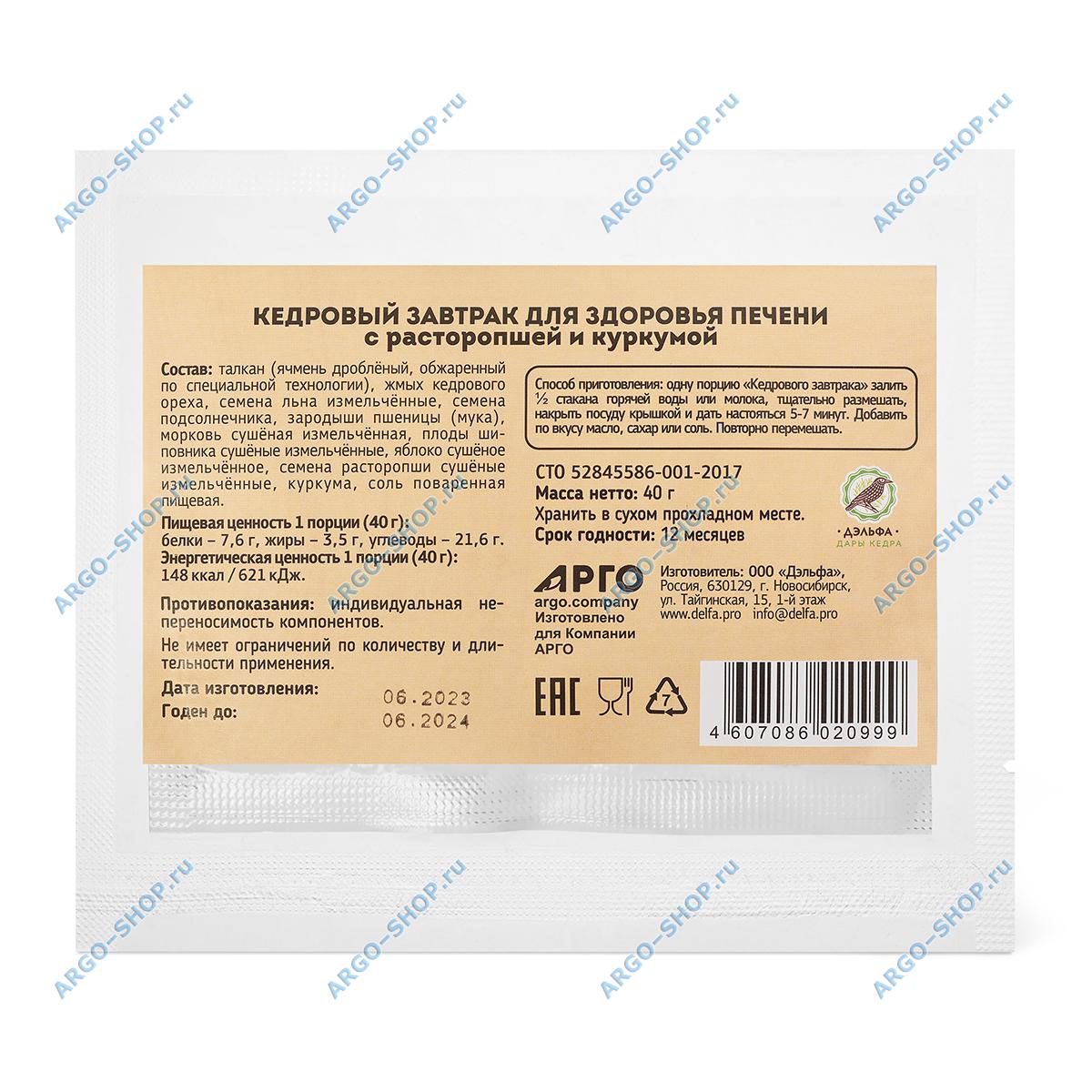 В нашем интернет магазине вы можете заказать и купить Завтрак кедровый для здоровья печени с расторопшей и куркумой по доступной цене. Завтрак кедровый для здоровья печени с расторопшей и куркумой купить на сайте Argo-shop.ru можно с доставкой на дом в Москве. Осуществляется доставка по регионам России.